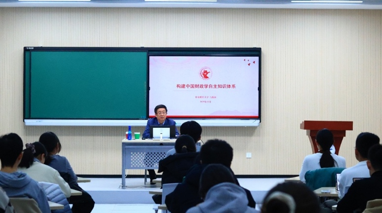 在闡述中國財政現(xiàn)實的基礎(chǔ)上,馬海濤教授進(jìn)一步指出,構(gòu)建自主知識體系不僅需要立足國情,更需要嚴(yán)謹(jǐn)治學(xué)的精神。他分享了學(xué)校學(xué)者長期深耕、不懈探索的感人事跡,強(qiáng)調(diào)構(gòu)建自主理論體系離不開“板凳要坐十年冷”的韌勁與定力。他勉勵同學(xué)們在理論學(xué)習(xí)和實地調(diào)研中,始終保持不盲從、不浮躁的探索精神,勇于承擔(dān)理論創(chuàng)新的時代責(zé)任。